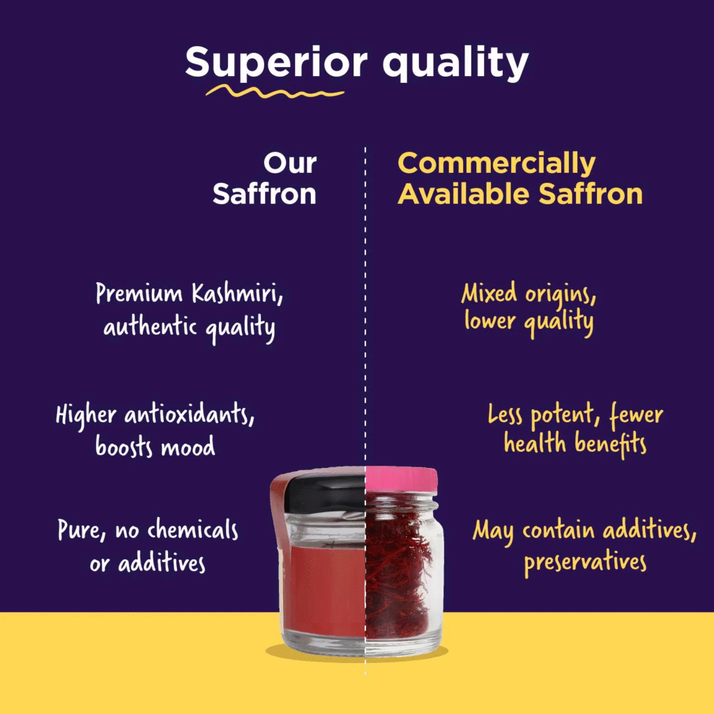 - Purity ā 100% natural and unadulterated saffron